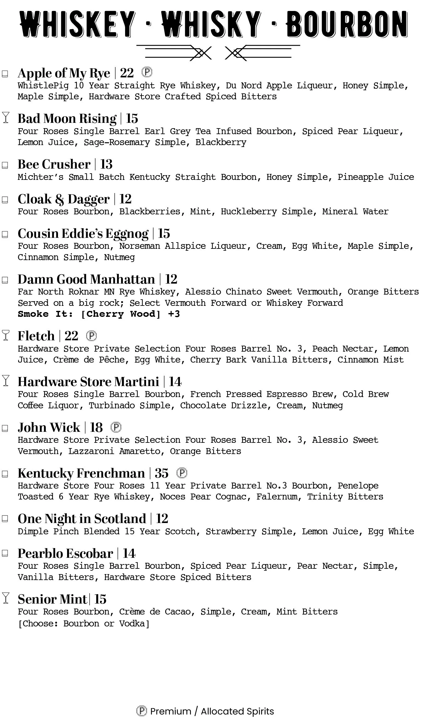 December 17 - WhistlePig PiggyBack 6 Year 100% Rye | January 7 - $6 Pick from 6 Different Whiskies Day! | January 14 - Penelope Four-Grain Bourbon | January 21 - $6 Smoke Wagon Desert Colt Straight Bourbon | January 28 - $6 Fiddler Wheated Straight Bourbon | February 4 - $6 Surprise New Whiskey Day! | February 11 - $6 Angel’s Envy Port Finish | February 18 - $6 Four Roses Single Barrel | February 25 - $6 Buffalo Trace Kentucky Straight Bourbon | (Repeating Cycle) While Supplies Last Each Week