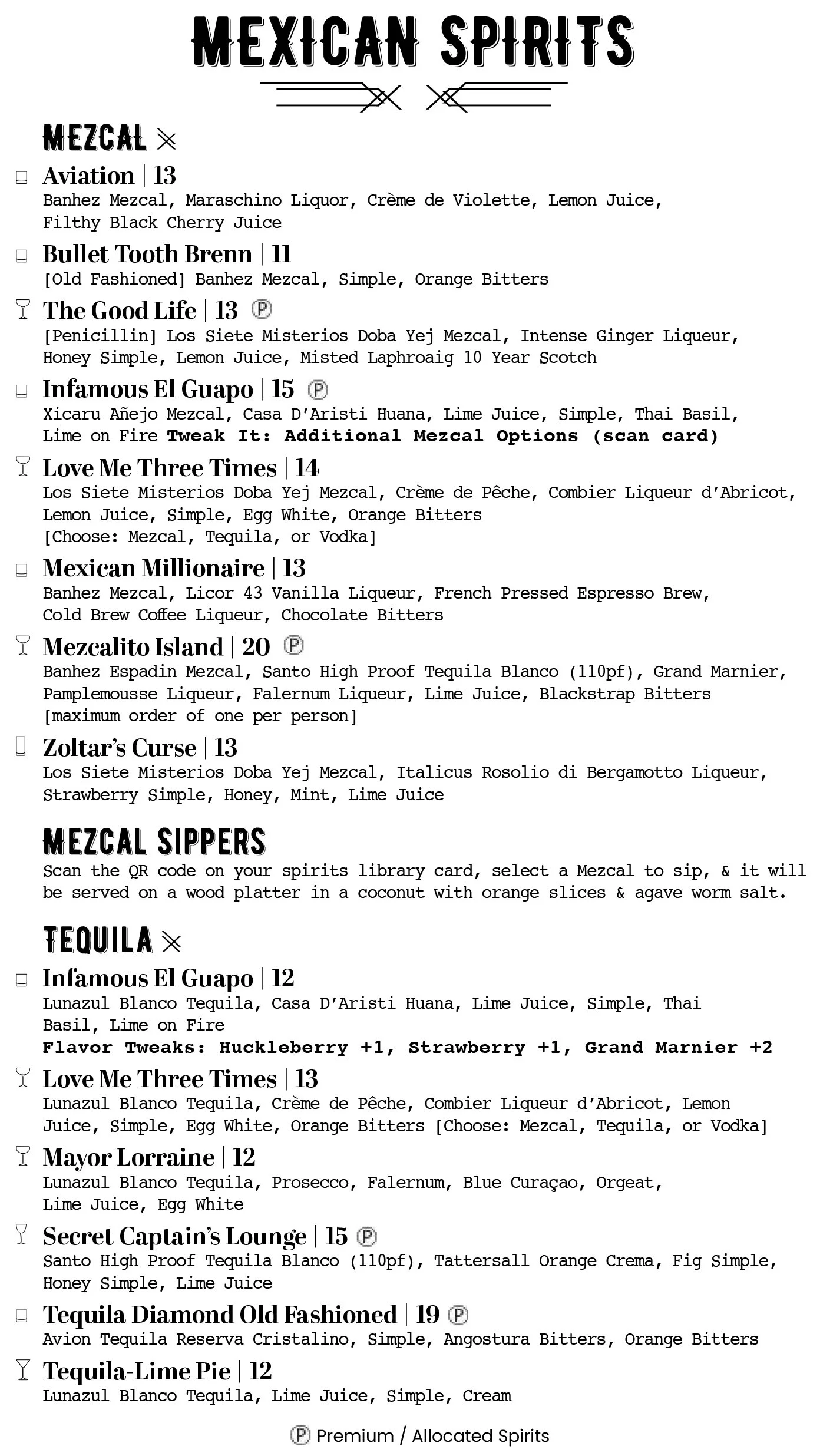 We serve all Mezcal & Sotol as sippers served with oranges & agave worm salt.