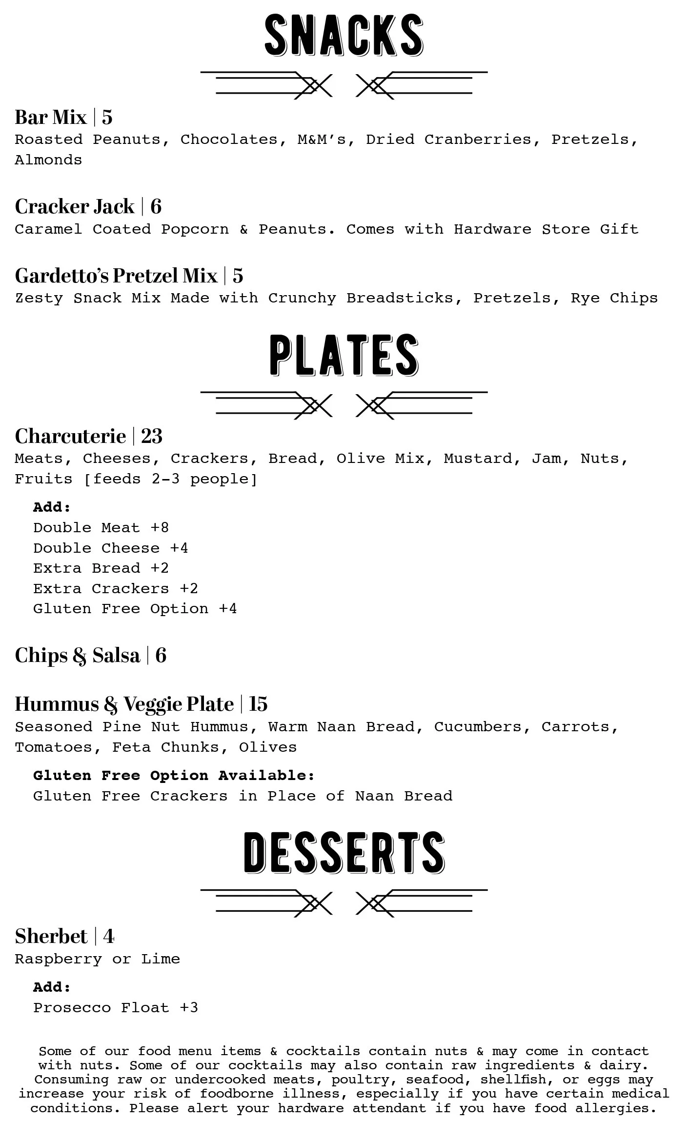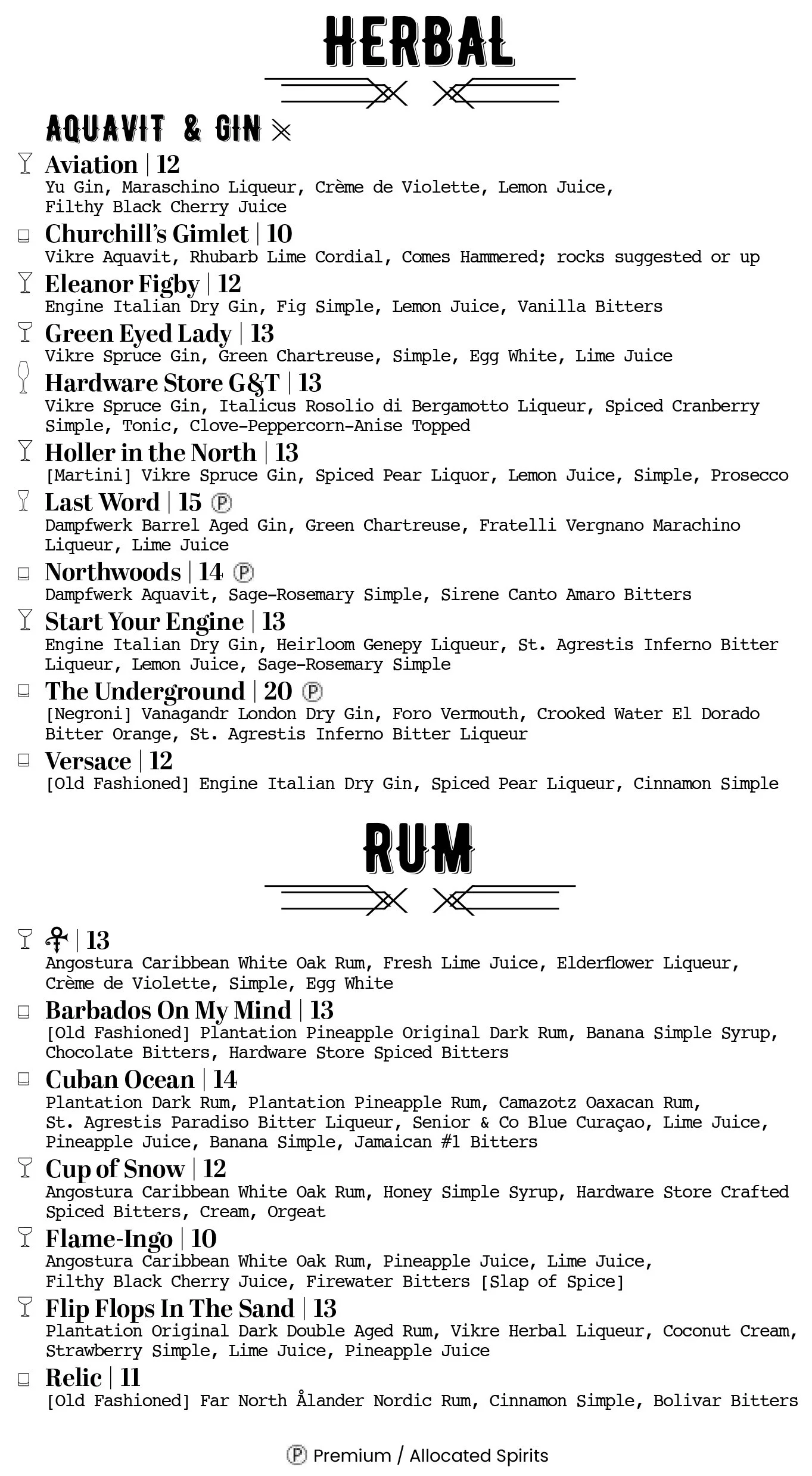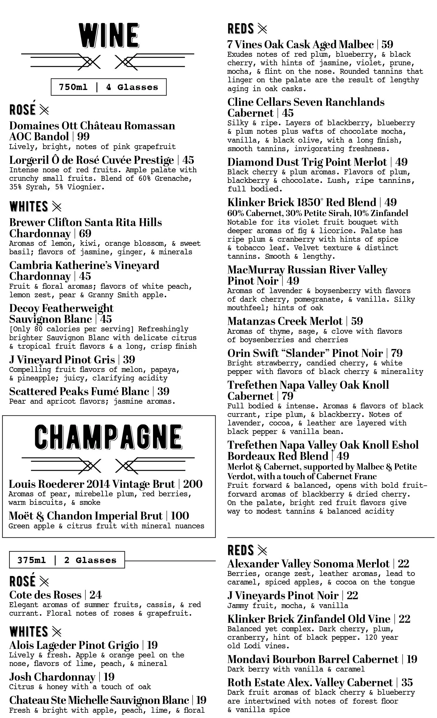 Price Shown Per 2 Ounce Pours - Unless Noted